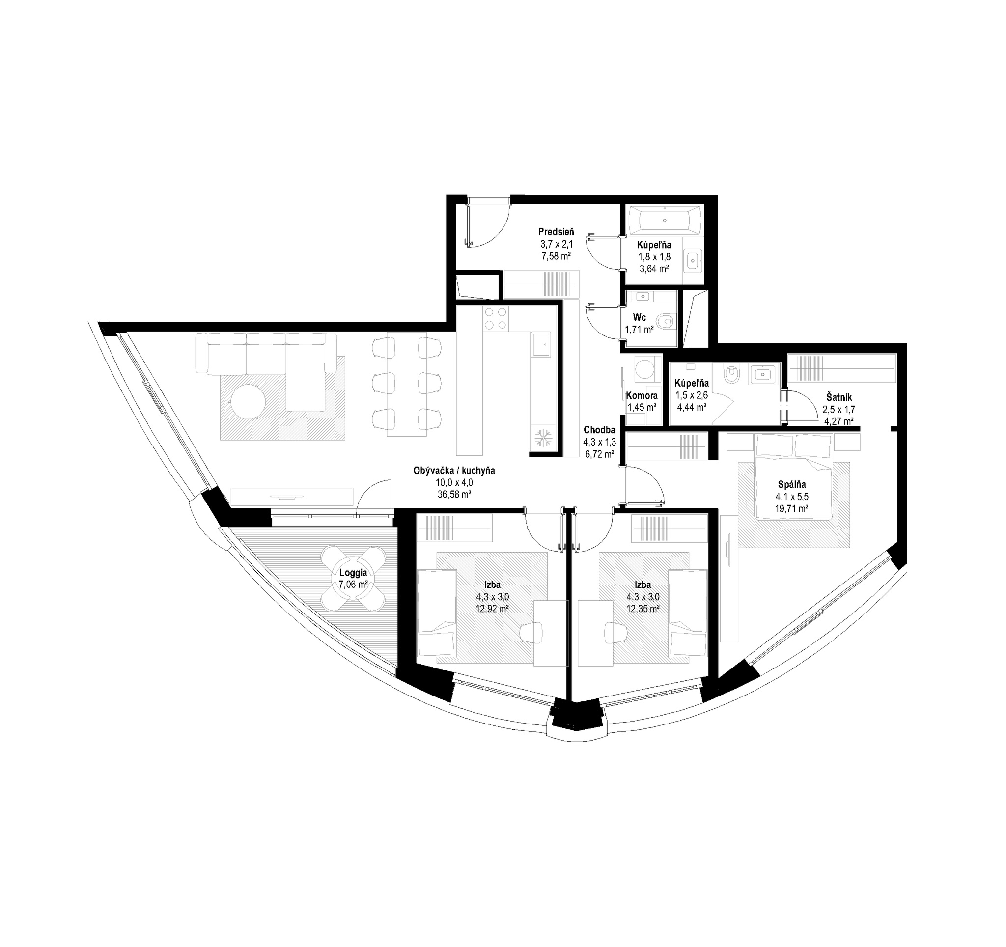 Flooring on the loggias or terraces are slatted wood or wood-plastic. Floor substrate surface deviations are within the range permitted under the STN 744505 standard.