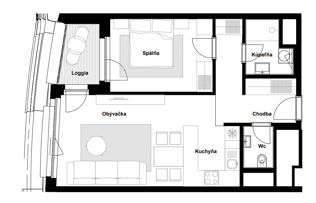 Flooring on the loggias or terraces are slatted wood or wood-plastic. Floor substrate surface deviations are within the range permitted under the STN 744505 standard.
